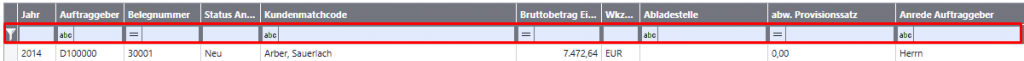 Man kann über dieses Feld auch nach mehreren Feldinhalten gleichzeitig suchen. Die Eingabe Arber Stehleuchte zeigt in der Auskunft alle Datensätze des Kunden Arber und mit dem Artikel Stehleuchte.