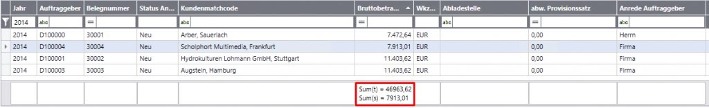 Mit dieser Einstellung werden am Ende jeder Spalte mit numerischen Feldern Summen gebildet. Diese Einstellung umfasst im Standard die Gesamtsumme der Spalte, sowie die Summe der markierten Datensätze.