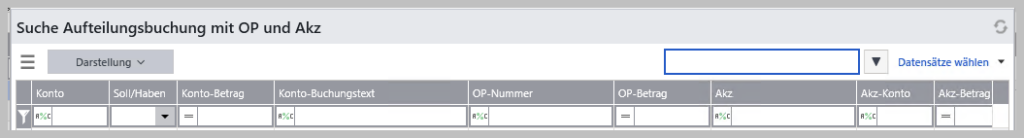 Suche Aufteilungsbuchung mit OP und Akz