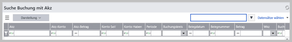 Suche Buchung mit Akz (=Abstimmkennzeichen)
