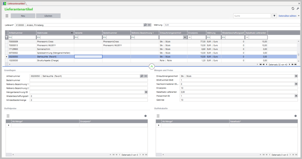 Lieferantenpreise und -rabatte ändern