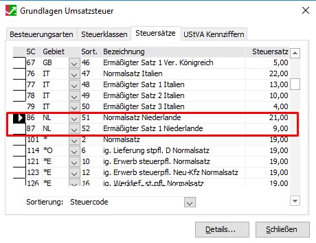 - Hinterlegung der Steuercodes mit dem ausländischem Steuersatz