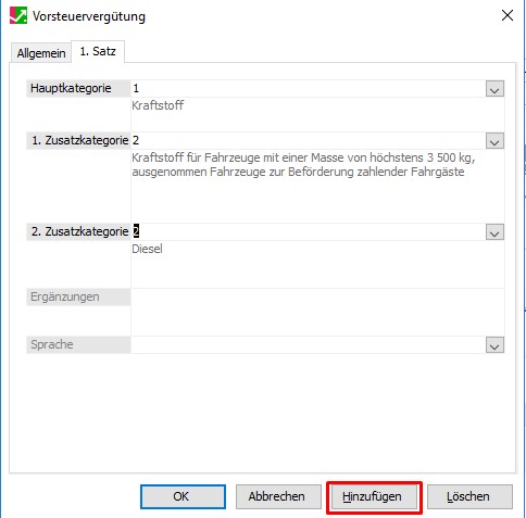 Eingabe der relevanten Daten zur Vorsteuervergütung in der Buchungserfassung